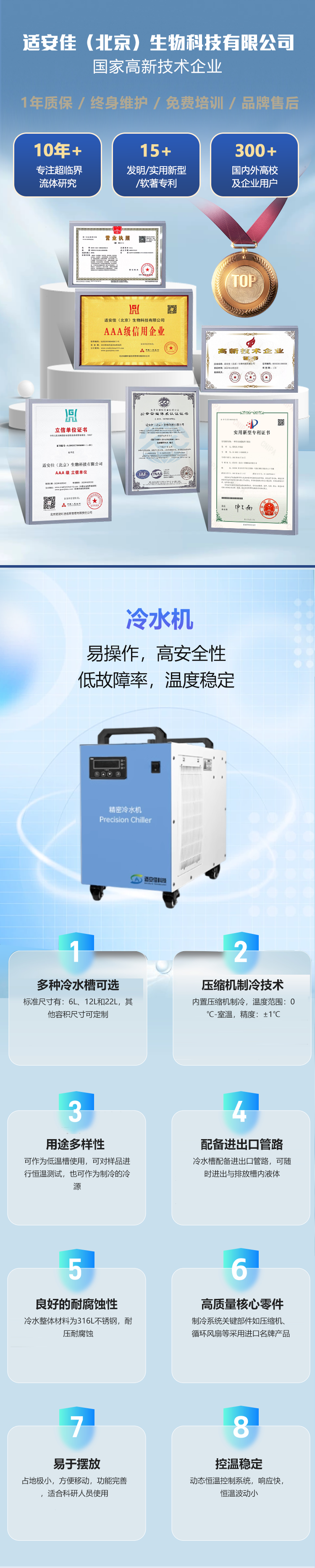 {"樣品池":"316L不銹鋼材質(zhì),帶藍寶石視窗和照明","氣路控制":"耐高壓閥門和管路,精確的流量控制,排氣流速≤10ml/min。","溫度控制":"電加熱和內(nèi)置壓縮機制冷,自動溫控,精度:±1℃。","過濾系統(tǒng)":"內(nèi)置和外置0.5um精度高壓過濾器。","耐高壓管路":"316L不銹鋼材質(zhì),精確設(shè)計,耐腐蝕和高壓。","臺式CO2高壓泵":"316L不銹鋼泵頭,藍寶石活塞,流速:0-100ml/min,壓力0 40Mpa ,內(nèi)置預(yù)冷罐為壓縮機制冷,無需冷水機。恒流恒壓模 式可選,觸摸屏操作,壓力